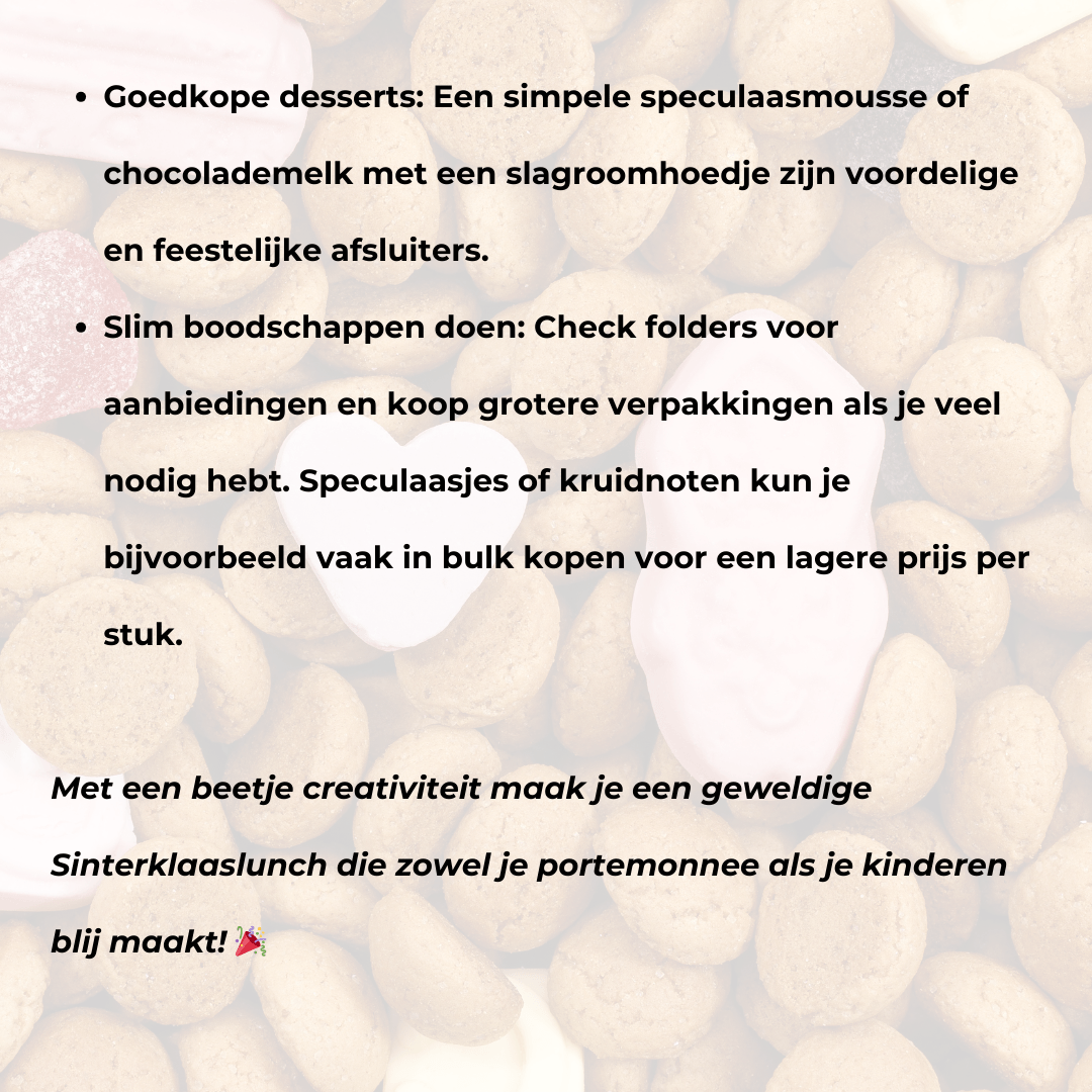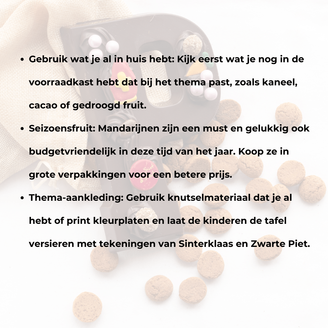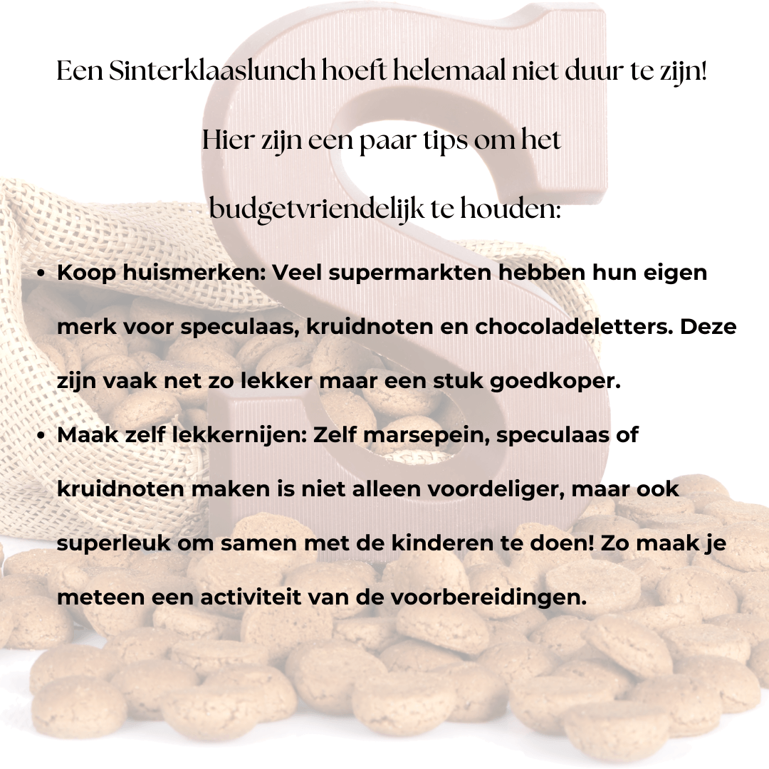 Een Sinterklaaslunch hoeft helemaal niet duur te zijn! Hier zijn een paar tips om het budgetvriendelijk te houden: